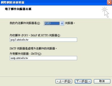 4.設定帳號, 例如s1111111 , 此處密碼可選擇輸入或不輸入 , 若不輸入, 每次開啟Outlook Express時
